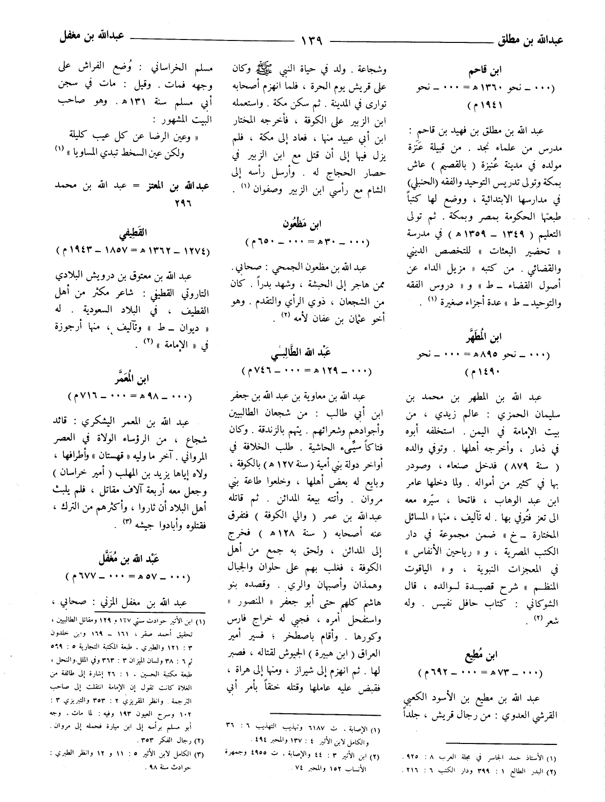 عبد الله بن مطلق بن فهيد بن قاحم: مدرّس من علماء نجد. من قبيلة عنزة مولده في مدينة عنيزة (بالقصيم) عاش بمكة وتولى تدريس التوحيد والفقه (الحنبلي) في مدارسها الابتدائية، ووضع لها كتبا طبعتها الحكومة بمصر وبمكة ثم تولى التعليم (1349 - 1359) في مدرسة " تحضير البعثات " للتخصص الديني والقضائي. من كتبه " مزيل الداء عن أصول القضاء - ط " و " دروس الفقه والتوحيد - ط " عدة أجزاء صغيرة (1) .