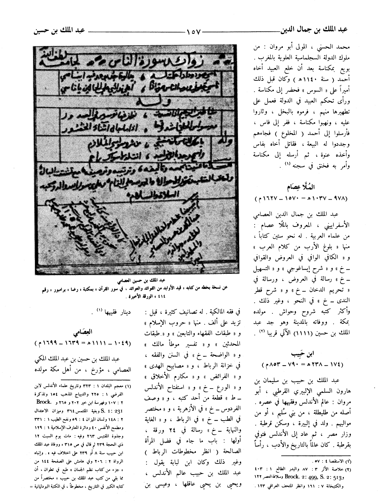 [[بن عبد الملك بن حسين العصامي عن نسخة بخطه من كتابه " قيد الأوابد من الفوائد والعوائد، في سور القرآن " بمكتبة " رضا " برامبور " رقم 414 " الورقة الاخيرة.]]