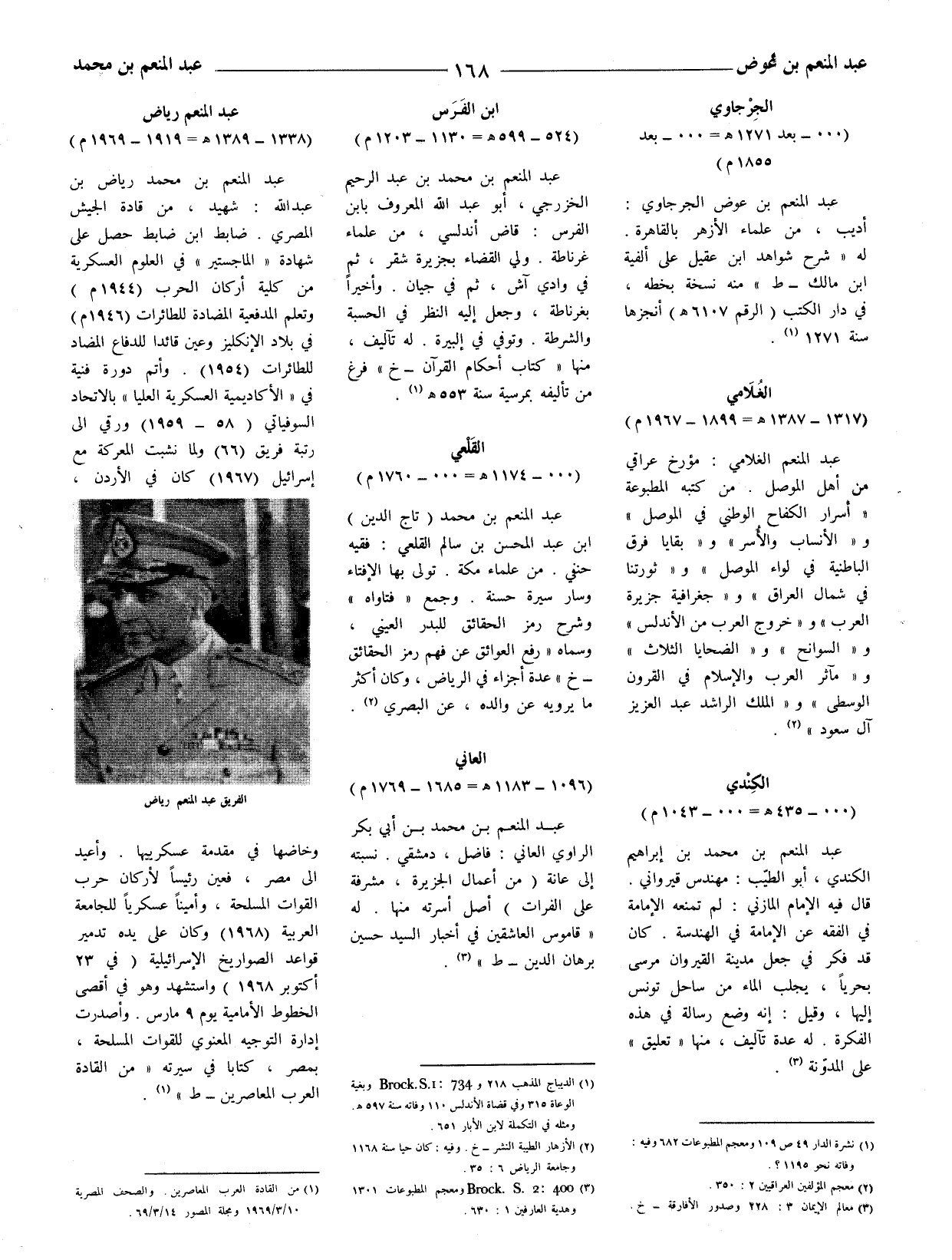 عبد المنعم الغلامي: مؤرخ عراقي من أهل الموصل. من كتبه المطبوعة " أسرار الكفاح الوطني في الموصل " و " الأنساب والأسر " و " بقايا فرق الباطنية في لواء الموصل " و " ثورتنا في شمال العراق " و " جغرافية جزيرة العرب " و " خرج العرب من الأندلس " و " السوانح " و " الضحايا الثلاث " و " مآثر العرب والإسلام في القرون الوسطى " و " الملك الراشد عبد العزيز آل سعود " (2) .