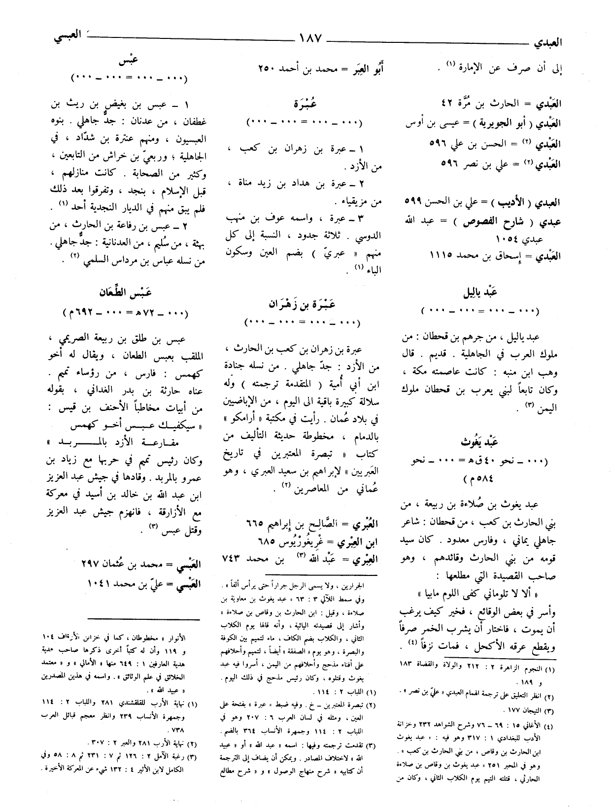 (2) تبصرة المعتبرين - خ. وفيه ضبط " عبرة " بفتحة على العين، مثله في لسان العرب 6: 207 وهو في اللباب 2: 114 وجمهرة الأنساب 364 بالضم.