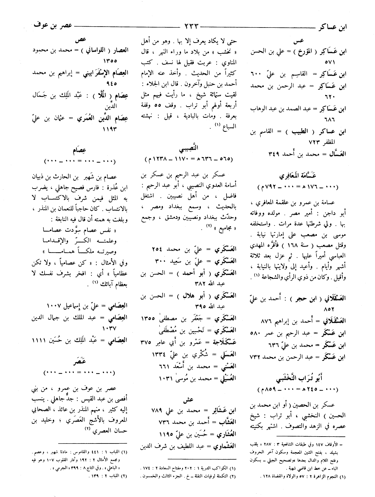 عسكر بن عبد الرحيم بن عسكر بن أسامة العدوي النصيبي، أبو عبد الرحيم: فاضل، من أهل نصيبين. اشتغل بالحديث، وسمع ببغداد ومصر، وحدّث ببغداد ونصيبين ودمشق، وجمع " مجاميع " (2) .
