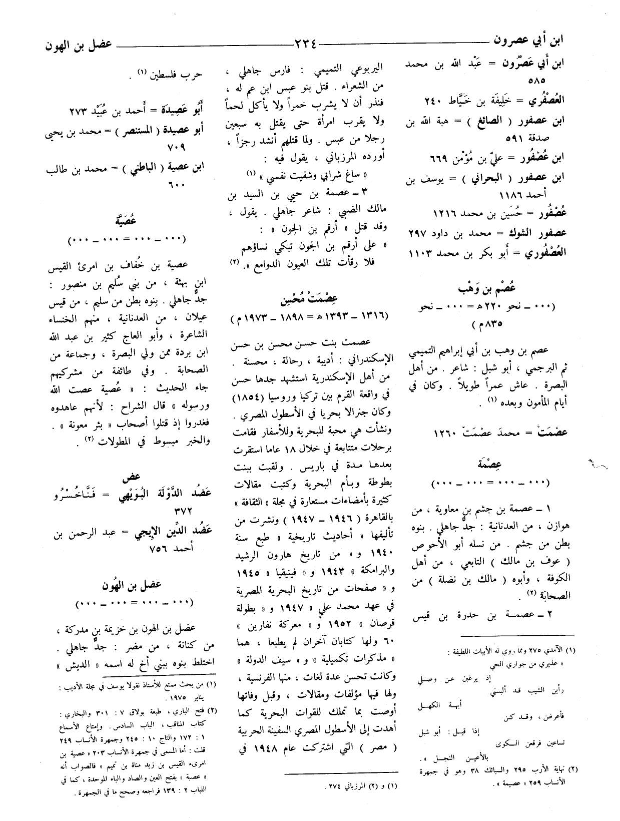 (2) فتح الباري، طبعة بولاق 7: 301 والبخاري: 1: 172 والتاج 10: 245 وجمهرة الأنساب 249 قلت: أما المسمى في جمهرة الأنساب 203 " عصية بن امرئ القيس بن زيد مناة بن تميم " فالصواب أنه " عصبة " بفتح العين والصاد والباء الموحدة، كما في اللباب 2: 139 فراجعه وصحح ما في الجمهرة.