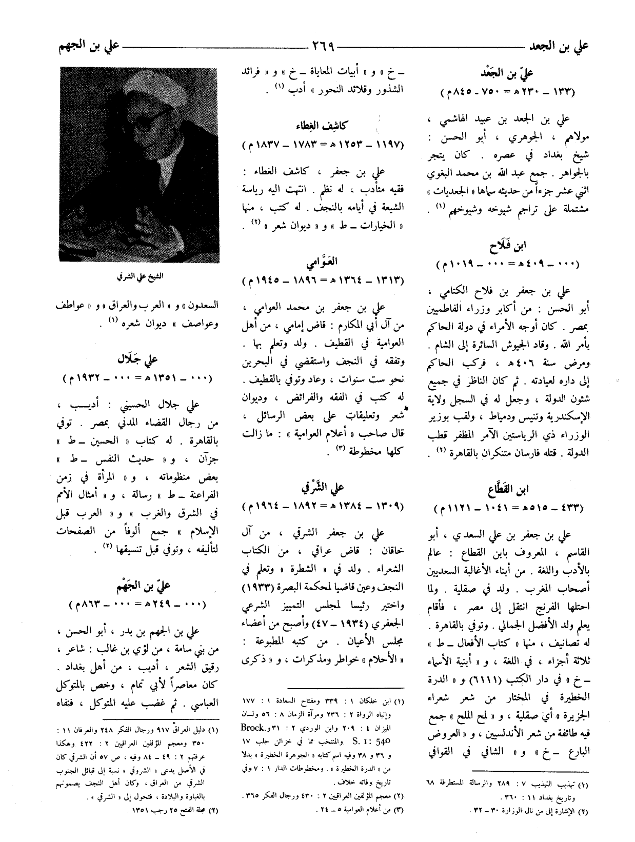 علي بن جعفر، كاشف الغطاء: فقيه متأدب، له نظم. انتهت إليه رياسة الشيعة في أيامه بالنجف.