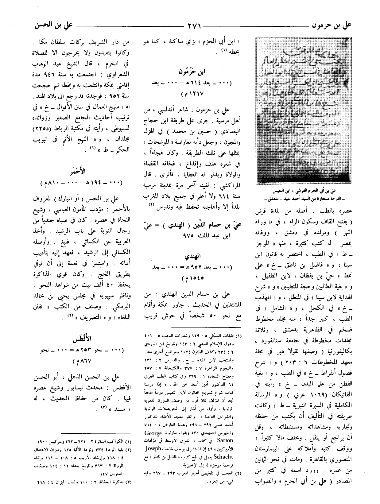 [[علي بن أبي الحزم القرشي، ابن النفيس - اللوحة مستعارة من السيد أحمد عبيد، بدمشق]] عصره بالطب. أصله من بلدة قرش (بفتح القاف وسكون الراء، في ما وراء النهر) ومولده في دمشق، ووفاته بمصر.