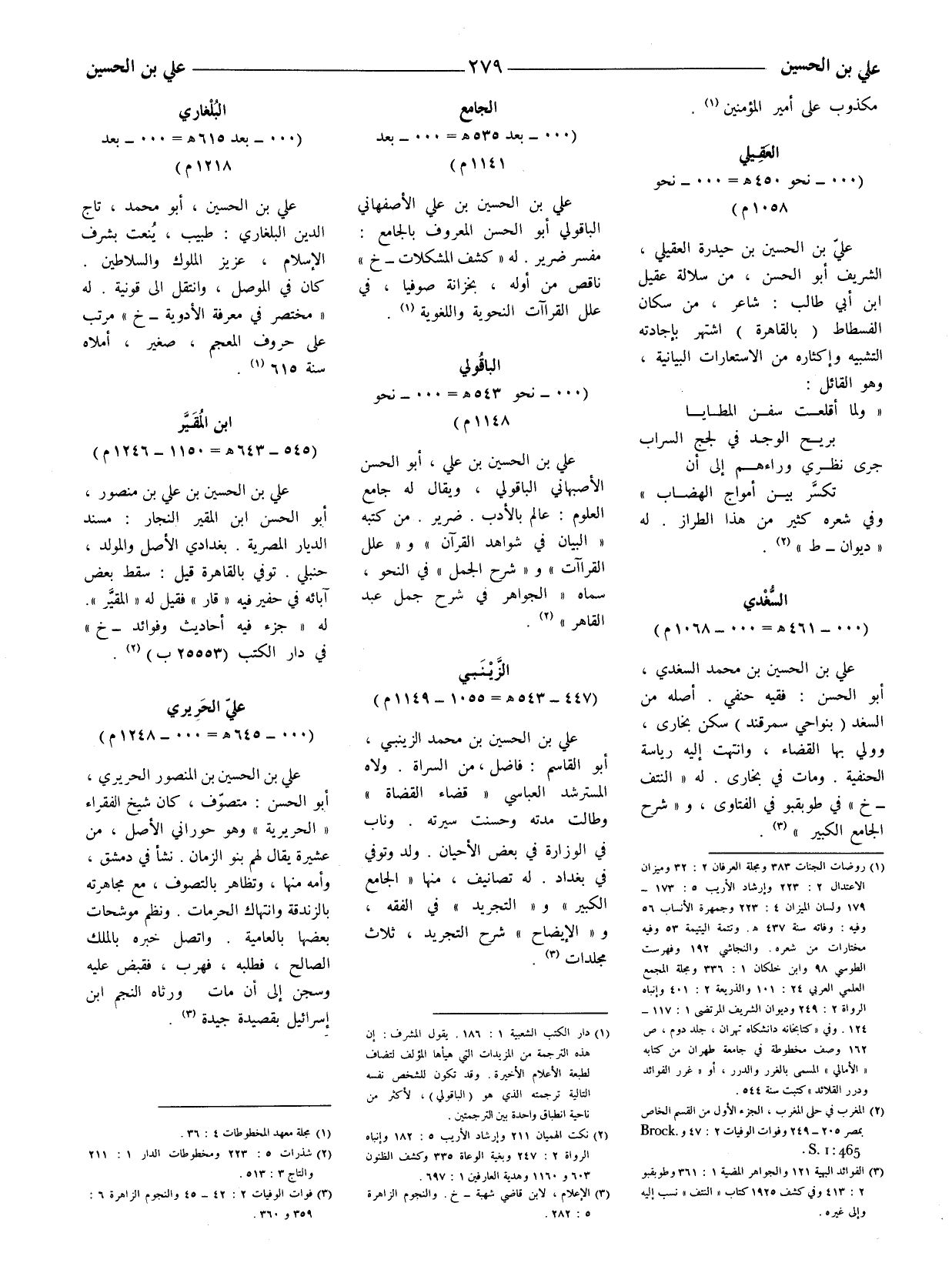 (1) دار الكتب الشعبية 1: 186 يقول المشرف: إن هذه الترجمة من المزيدات التي هيأها المؤلف لتضاف لطبعة الأعلام الأخيرة. وقد تكون للشخص نفسه التالية ترجمته الّذي هو (الباقولي) ، لأكثر من ناحية النطباق واحدة بين الترجمتين.