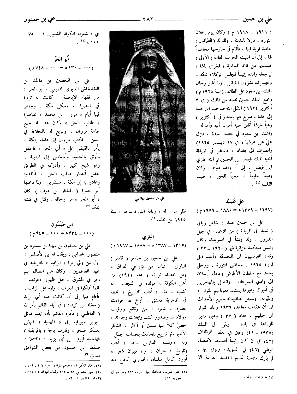 علي بن حسين عبيد: شاعر رب أبي (نسبة الى الربابة) من الزعماء في جبل الدروز. ولد ونشأ في السويداء وكان رئيس محكمة جزائية فيها (1920 - 22) ونفاه الفرنسيون الى الحسكة وأعيد قبل