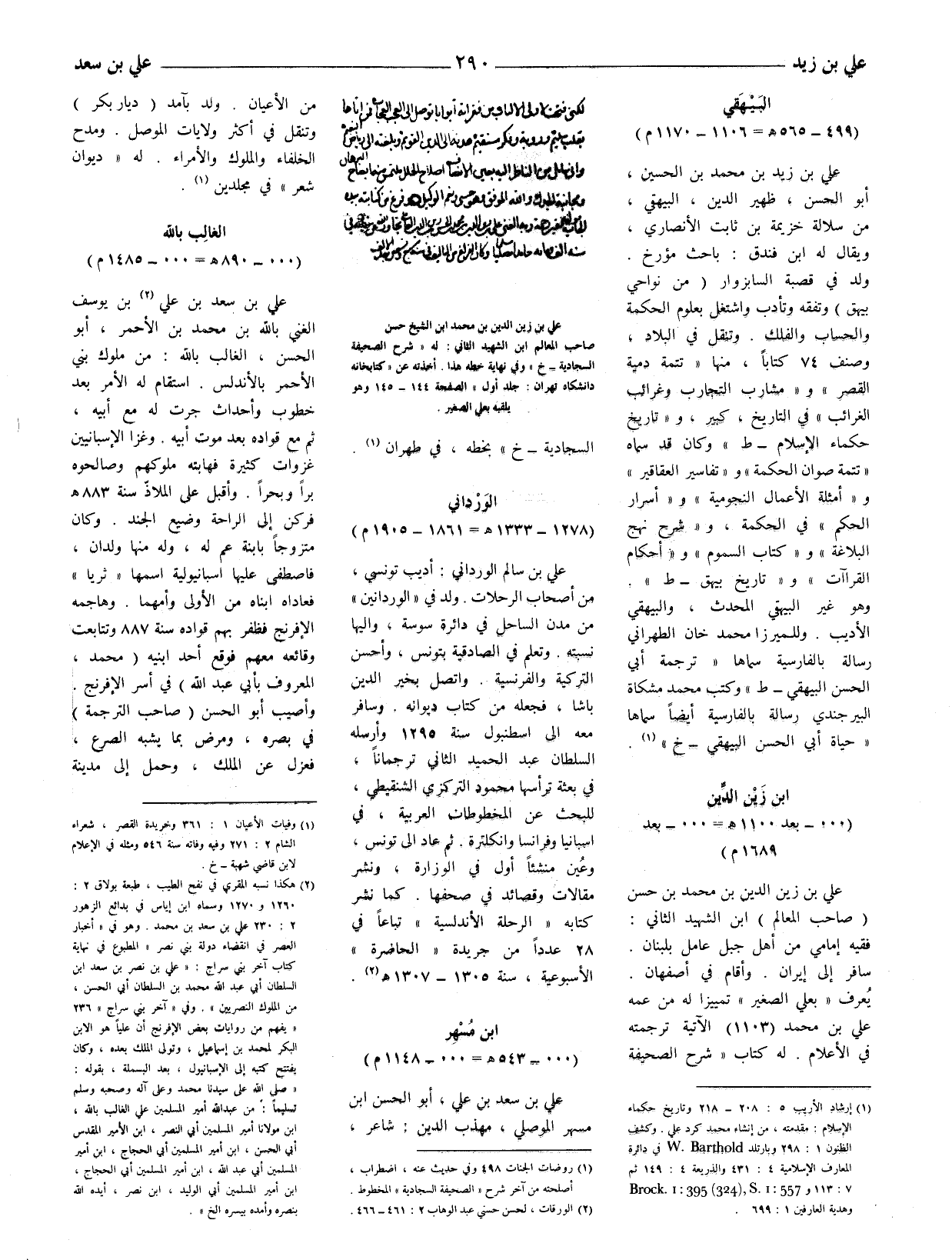 (1) إرشاد الأريب 5: 208 - 218 وتاريخ حكماء الإسلام: مقدمته، من إنشاء محمَّد كُرْد عَلي.