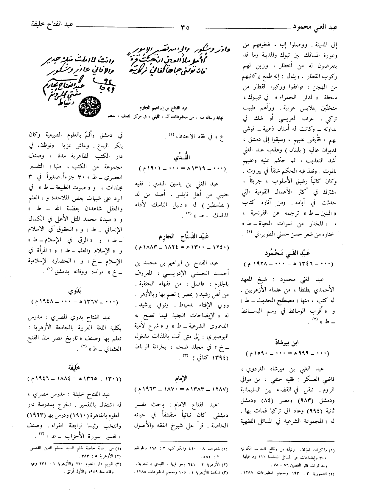عبد الفتاح بدوي المصري: مدرس بكلية اللغة العربية بالجامعة الأزهرية: تعلم بها وصنف " تاريخ مصر منذ الفتح العثماني - ط " (2) .