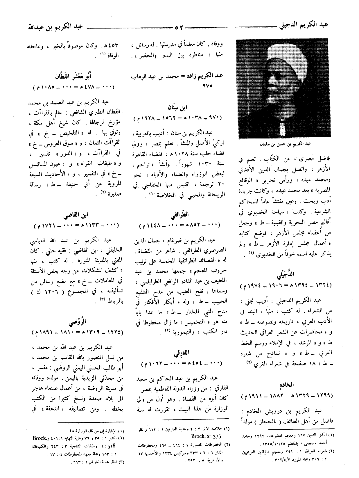 عبد الكريم بن درويش الخادم: فاضل من أهل الطائف (بالحجاز) مولدا