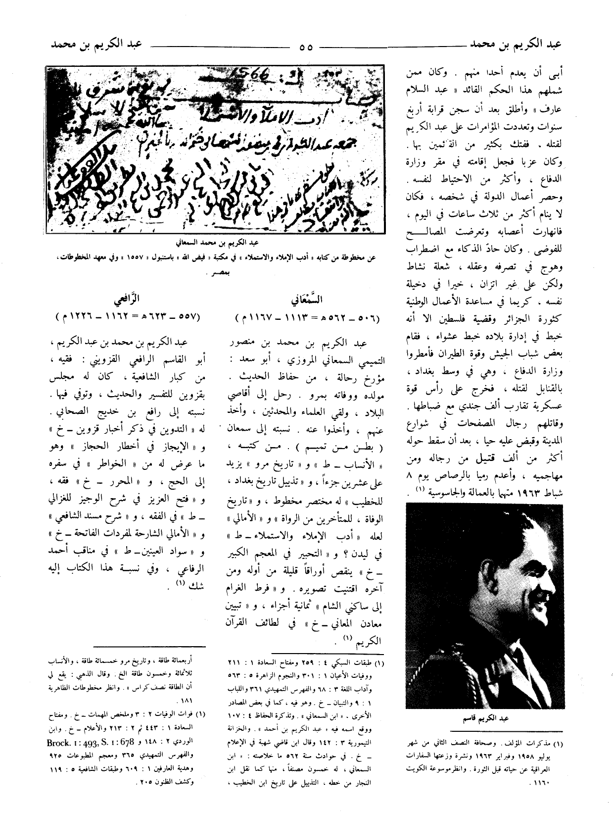 (1) مذكرات المؤلف. وصحافة النصف الثاني من شهر يوليو 1958 وفبراير 1963 ونشرة وزعتها السفارات العراقية عن حياته قبل الثورة. وانظر موسوعة الكويت 1160.