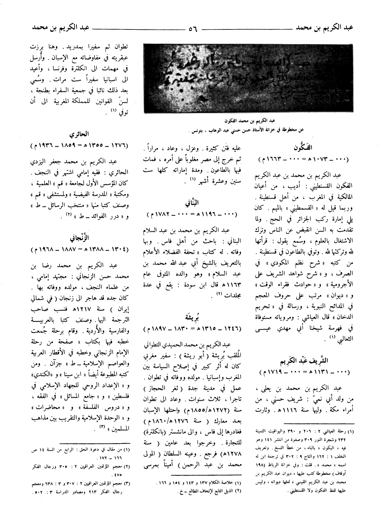[[عبد الكريم بن محمد الفكون عن مخطوطة في خزانة الأستاذ حسن حسني عبد الوهاب، بتونس]] .