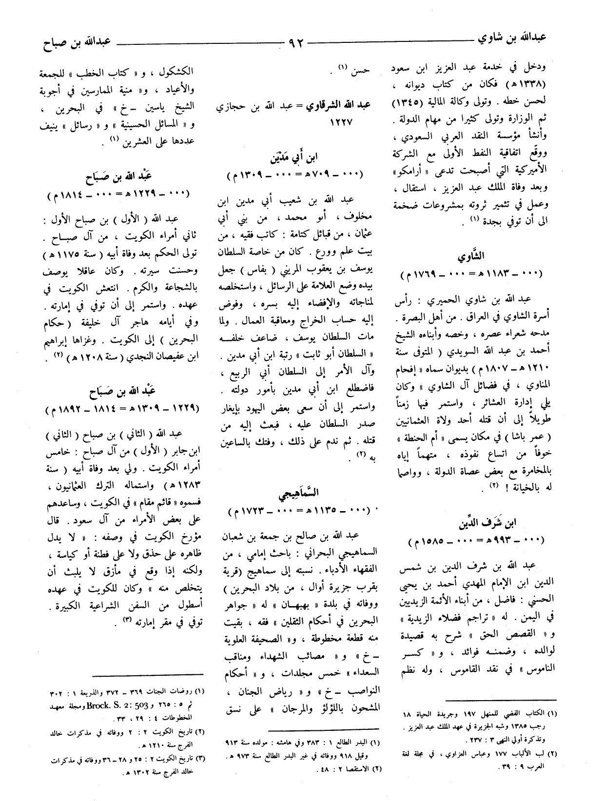 (1) الكتاب الفضي للمنهل 197 وجريدة الحياة 18 رجب 1385 وشبه الجزيربة في عهد الملك عبد العزيز. وتذكرة أولى النهي 3: 237.