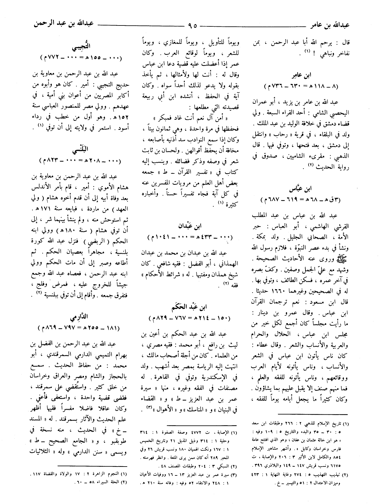 (1) تاريخ الإسلام للذهبي 2: 266 وطبقات ابن سعد 5: 30 - 35 والبدء والتاريخ 5: 109 وفيه: " هو ابن خالة عثمان بن عفان، وهو الّذي افتتح عامة فارس وخراسان وكابل ". وأشهر مشاهير الإسلام 854 والكامل لابن الأثير 3: 206 والإصابة، ت 6175
