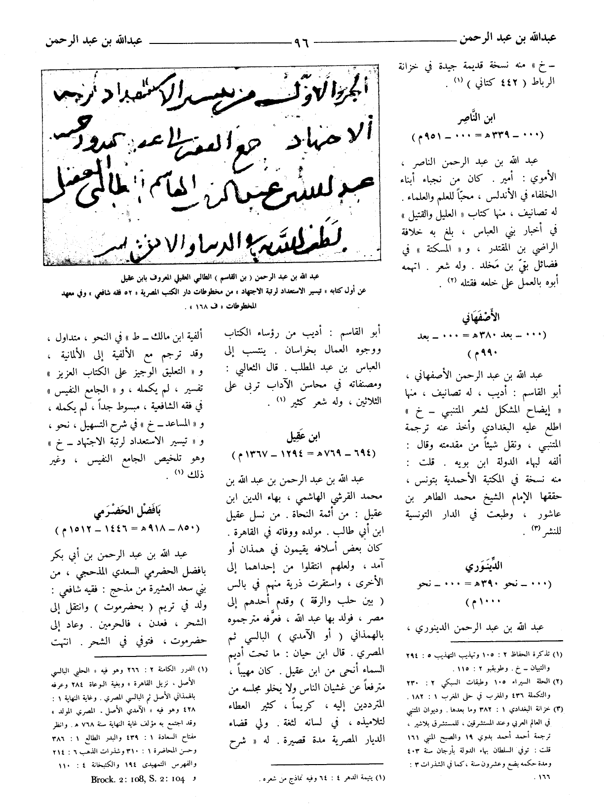[[عبد الله بن عبد الرحمن (بن القاسم) الطالبي العقيلي المعروف بابن عقيل عن أول كتابه " تيسير الاستعداد لرتبة الاجتهاد " من مخطوطات دار الكتب المصرية " 52 فقه شافعي " وفي معهد المخطوطات " ف 168 ".]]
