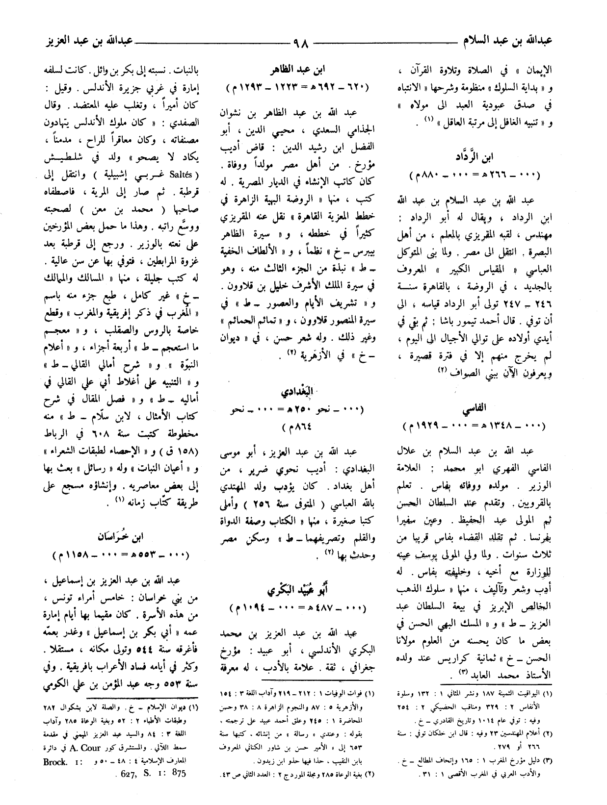 (1) ديوان الإسلام - خ. والصلة لابن بشكوال 282 وطبقات الأطباء 2: 52 وبغية الوعاة 285 وآداب اللغة 3: 84 والسيد عبد العزيز الميمني في مقدمة سمط اللآلي. والمستشرق كور A Cour. في دائرة المعارف الإسلامية 4: 48 - 50 و Brock 627, S I: 875.