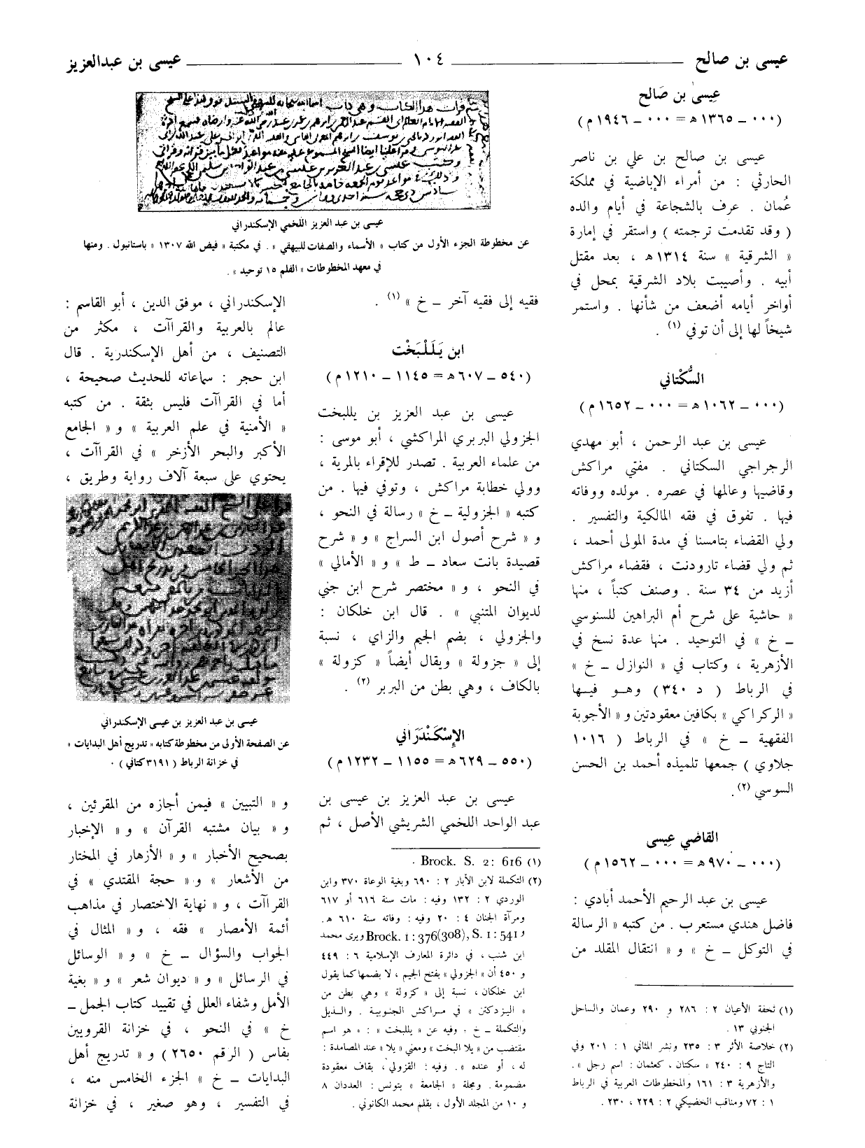 (2) خلاصة الأثر 3: 235 ونشر المثاني 1: 201 وفي التاج 9: 240 " سكتان، كعثمان: اسم رجل ". والأزهرية 3: 161 والمخطوطات العربية في الرباط 1: 72 ومناقب الحضيكي 2: 229، 230.