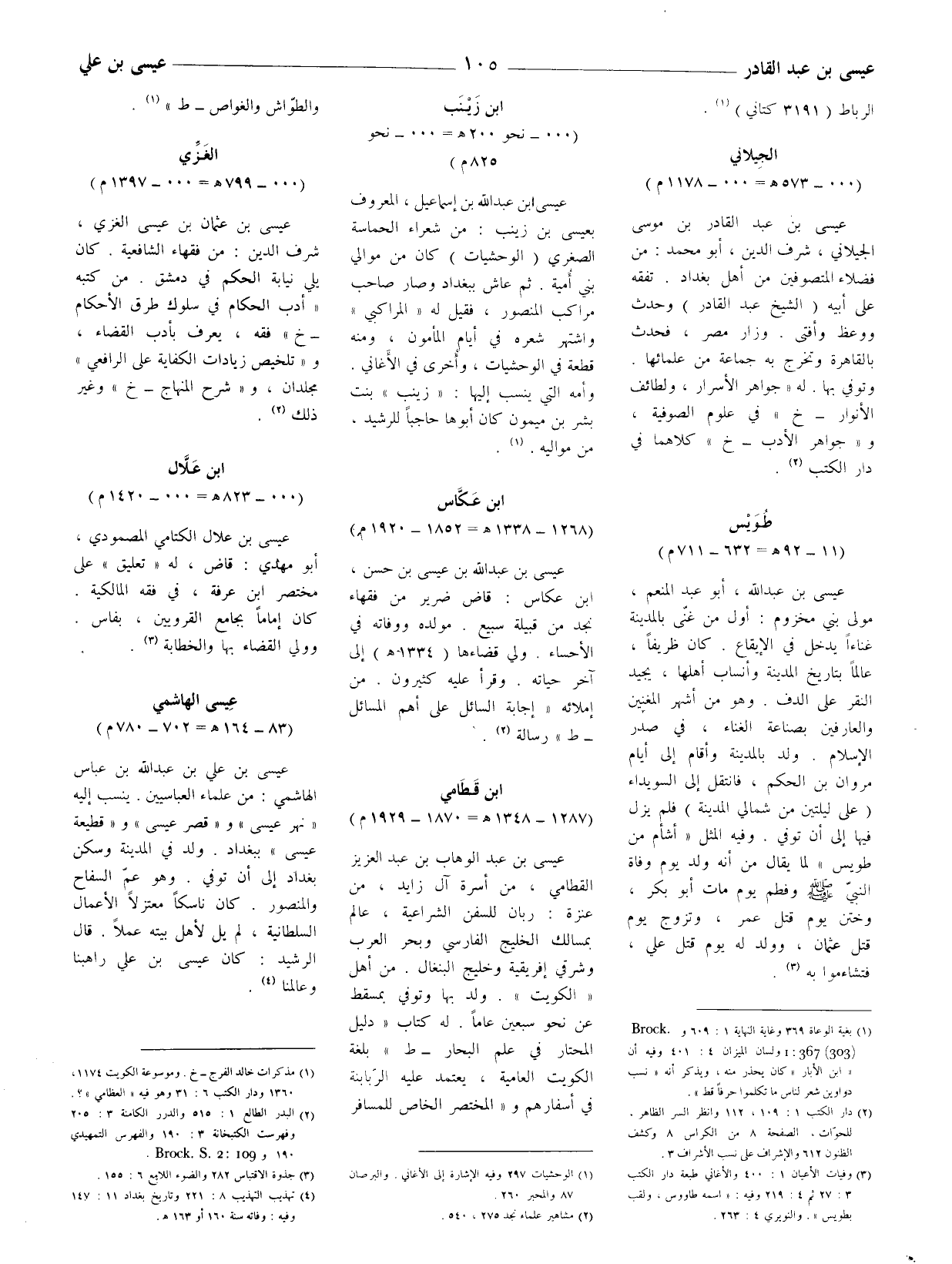 (2) دار الكتب 1: 109، 112 وانظر السر الظاهر. للحواث، الصفحة 8 من الكراس 8 وكشف الظنون 612 والإشراف على نسب الأشراف 3.
