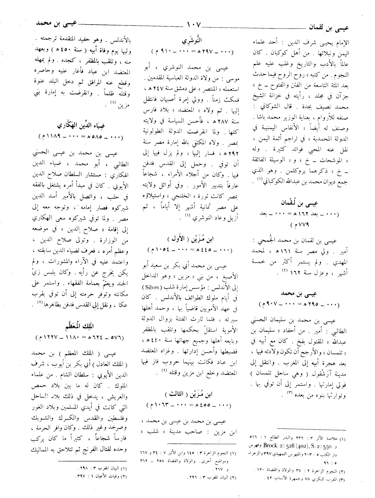 عيسى بن محمد بن عيسى الحسني الطالبي، أبو محمد، ضياء الدين الهكاري: مستشار السلطان صلاح الدين الأيوبي. كان في مبدإ أمره يشتغل بالفقه في حلب، واتصل ب الأمير أسد الدين شيركوه فصار إمامه، وتوجه معه إلى مصر. ولما توفي شيركوه سعى الهكاري إلى إقامة " صلاح الدين " في موضعه من الوزارة. وتولى صلاح الدين، وعظم أمره، فعرف لضياء الدين سابقته، واعتمد عليه في الآراء والمشورات، ولم يكن يخرج عن رأيه. وكان يلبس زيّ الجند ويعتمّ بعمامة الفقهاء. واستمر على مكانته وتوفر حرمته إلى أن توفي بقرب عكا، ونقل إلى القدس فدفن بظاهرها (2) .