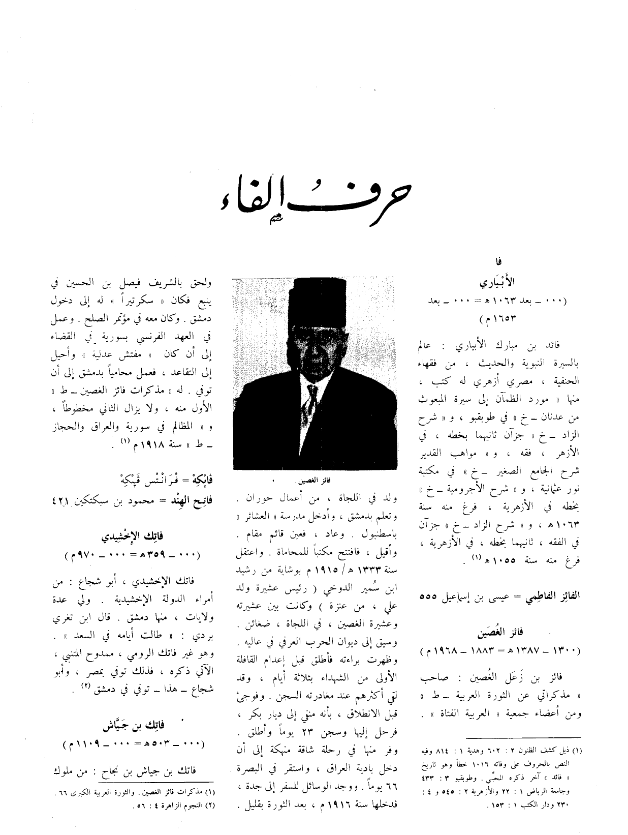 فائز بن زعل الغصين: صاحب " مذكراتي عن الثورة العربية - ط " ومن أعضاء جمعية " العربية الفتاة ".