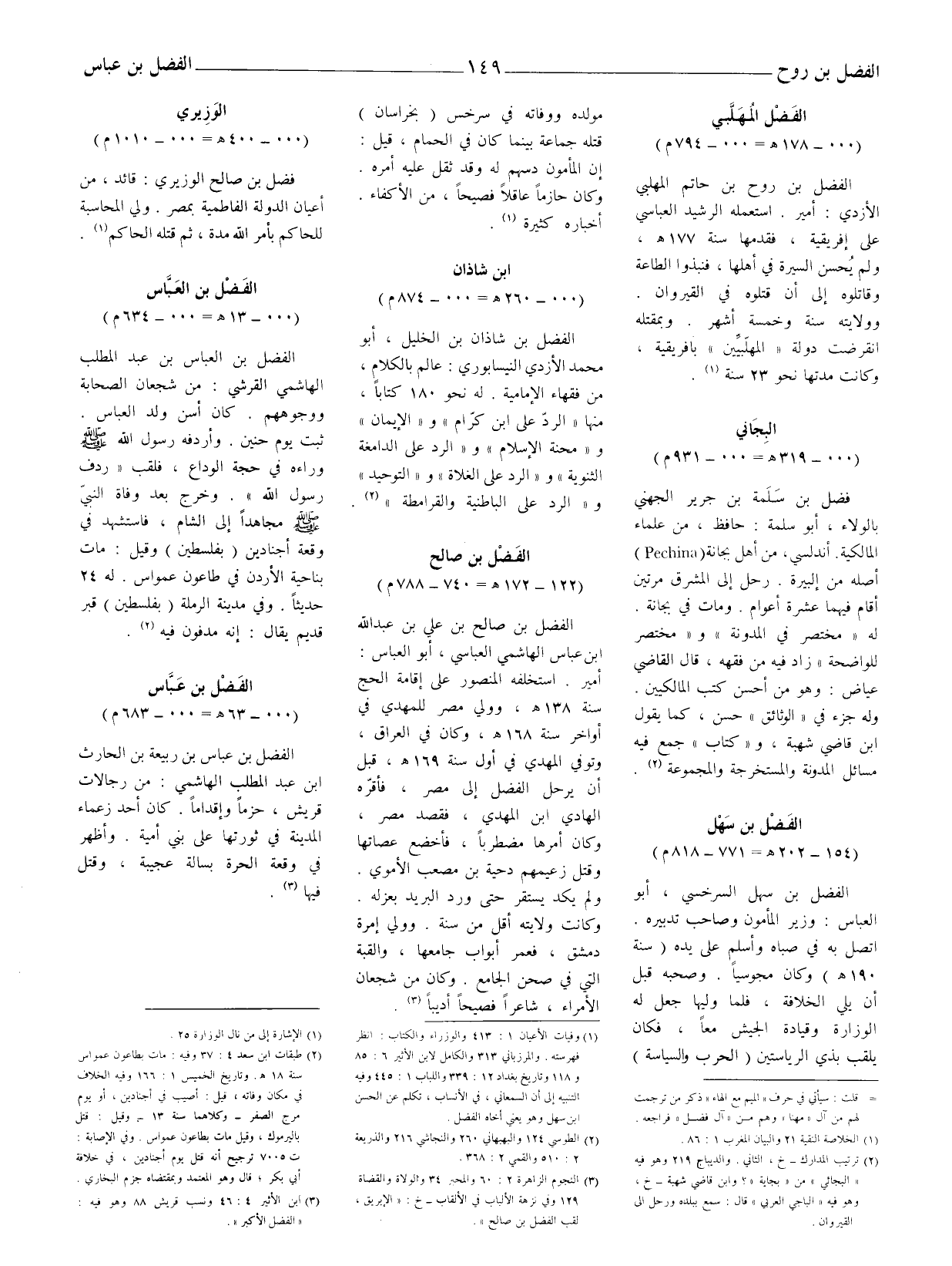 (1) وفيات الأعيان 1: 413 والوزراء والكتاب: انظر فهرسته. والمرزباني 313 والكامل لابن الأثير 6: 85 و 118 وتاريخ بغداد 12: 339 واللباب 1: 445 وفيه التنبيه إلى أن السمعاني، في الأنساب، تكلم عن الحسن ابن سهل وهو يعني أخاه الفضل.