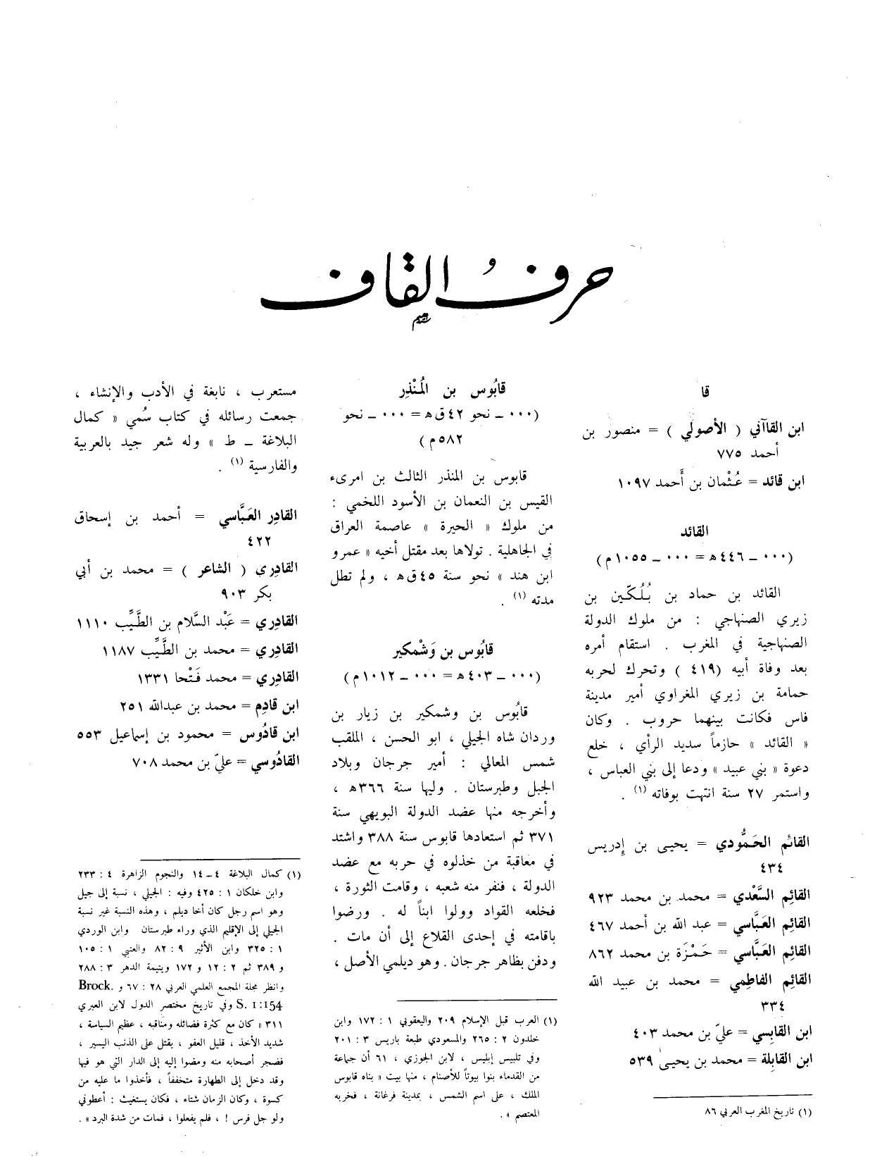(1) العرب قبل الإسلام 209 واليعقوبي 1: 172 وابن خلدون 2: 265 والمسعودي طبعة باريس 3: 201 وفي تلبيس إبليس، لابن الجوزي، 61 ان جماعة من القدماء بنوا بيوتا للأصنام، منها بيت " بناه قابوس الملك، على اسم الشمس، بمدينة فرغانة، فخربه المعتصم ".
