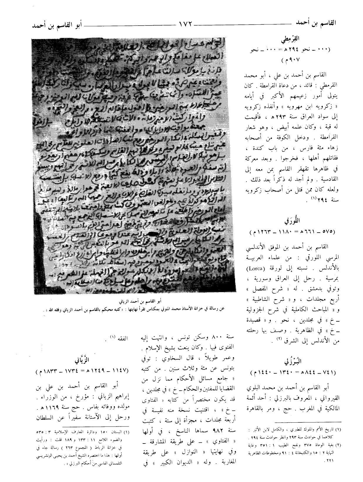 (1) البستان 150 ودائرة المعارف الإسلامية 3: 535 والضوء اللامع 11: 133 و 189 قلت: ورأيت في خزانة الرباط (المجموع 263) رسالة جاء في أولها: هذا ما اختصره الشَّيْخ أحمد بن يحيى الونشريسي التلمساني الفاسي من أحكام البرزلي ".