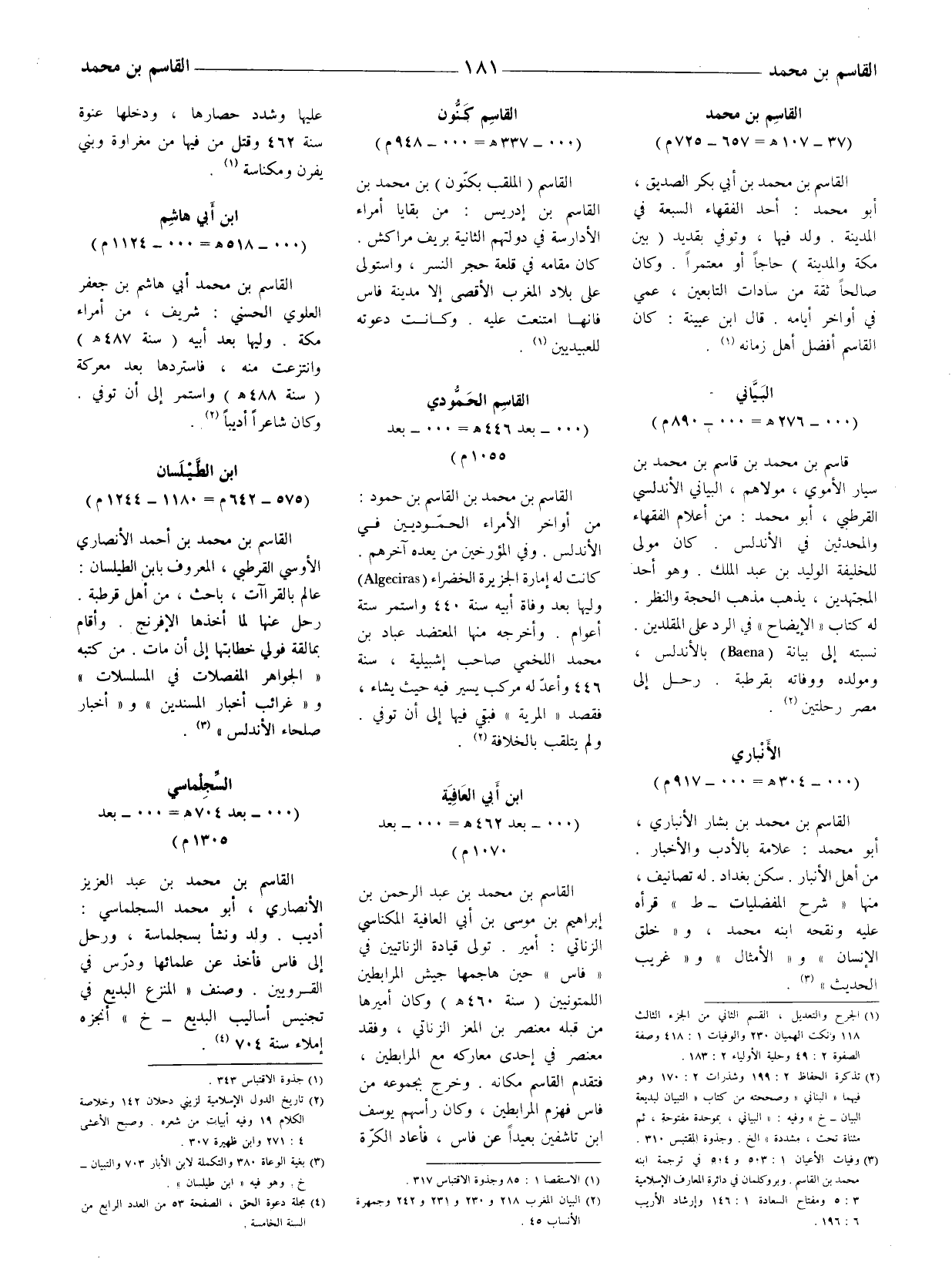 (3) وفيات الأعيان 1: 503 و 504 في ترجمة ابنه محمد بن القاسم. وبروكلمان في دائرة المعارف الإسلامية 3: 5 ومفتاح السعادة 1: 146 وإرشاد الأريب 6: 196.