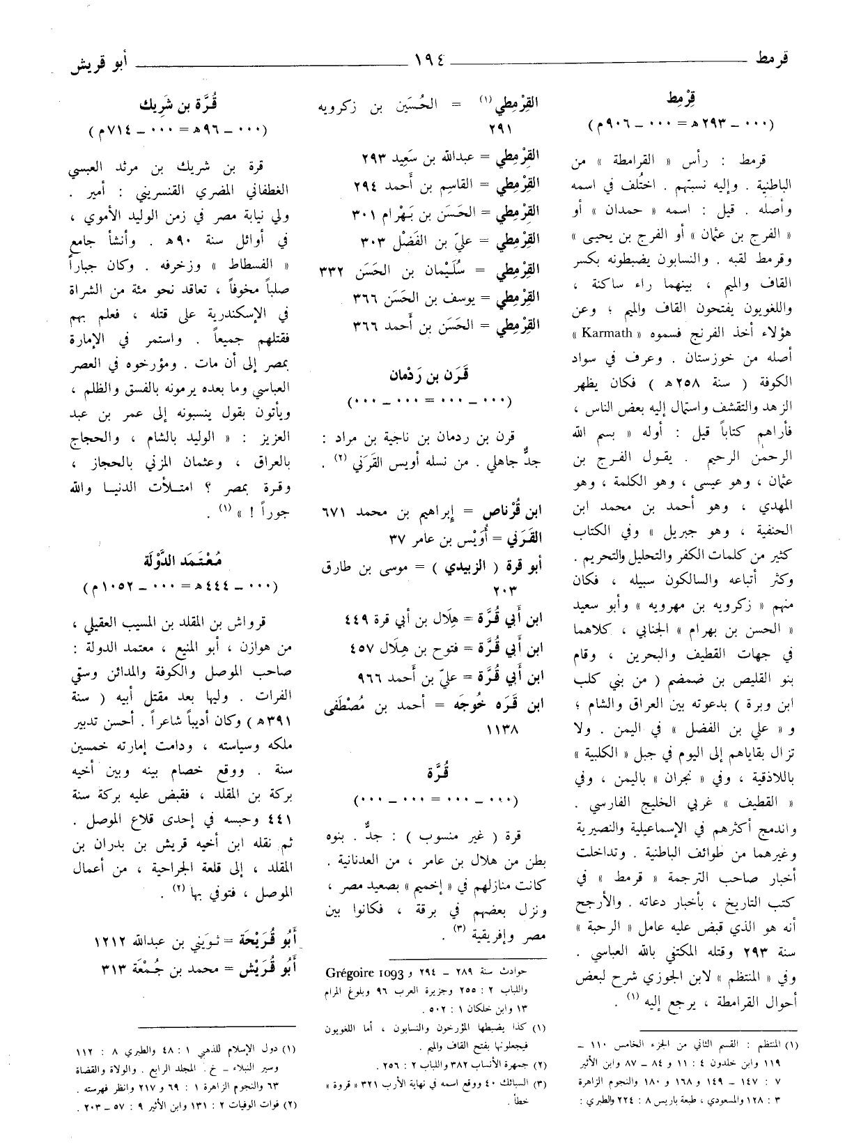 (2) كذا يضبطها المؤرخون والنسابون، أما اللغويون فيجعلونها بفتح القاف والميم.