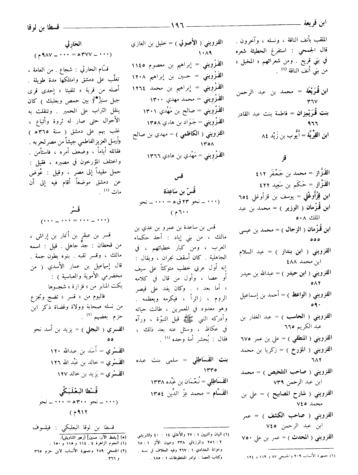 قسّام الحارثي: شجاع. من العامة، تغلَّب على دمشق وامتلكها مدة طويلة. أصله من قرية " تلفيتا " إحدى قرى جبل سنير (*) (بين حمص وبعلبكّ) كان ينقل التراب على الحمير. وتنقلت به الأحوال حتى صار له ثروة وأتباع، غلب بهم على دمشق (سنة 365 هـ وأرسل العزيز الفاطمي جيشا من مصر لحربه. فقاتله أياما، وضعف أمره، فاستأمن. واختلف المؤرخون في مصيره، فقيل: حمل مقيدا إلى مصر، وقيل: عوُض عن دمشق موضعا أقام فيه إلى أن مات (1) .
