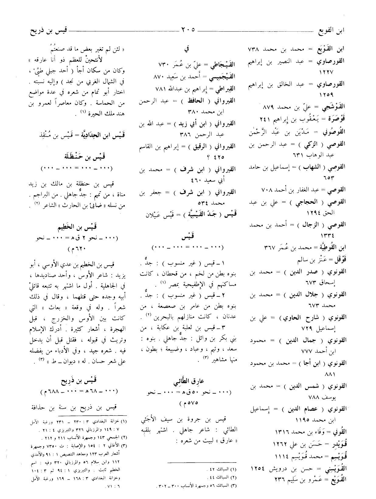 1 - قيس (غير منسوب) : جد. بنوه بطن من لخم، من قحطان، كانت مساكنهم في الإطفيحية بمصر (1) 2 - قيس (غير منسوب) : جد. بنوه بطن من عامر بن صعصعة، من عدنان، كانت منازلهم بالبحرين (2) .