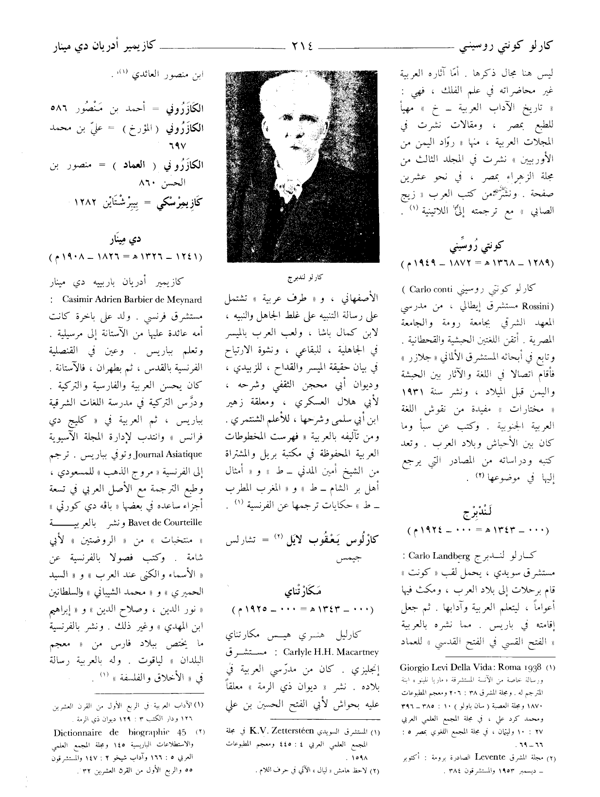 (2) Dictionnaire de biographie 45 والاستطلاعات البارسية 145 ومجلة المجمع العلمي