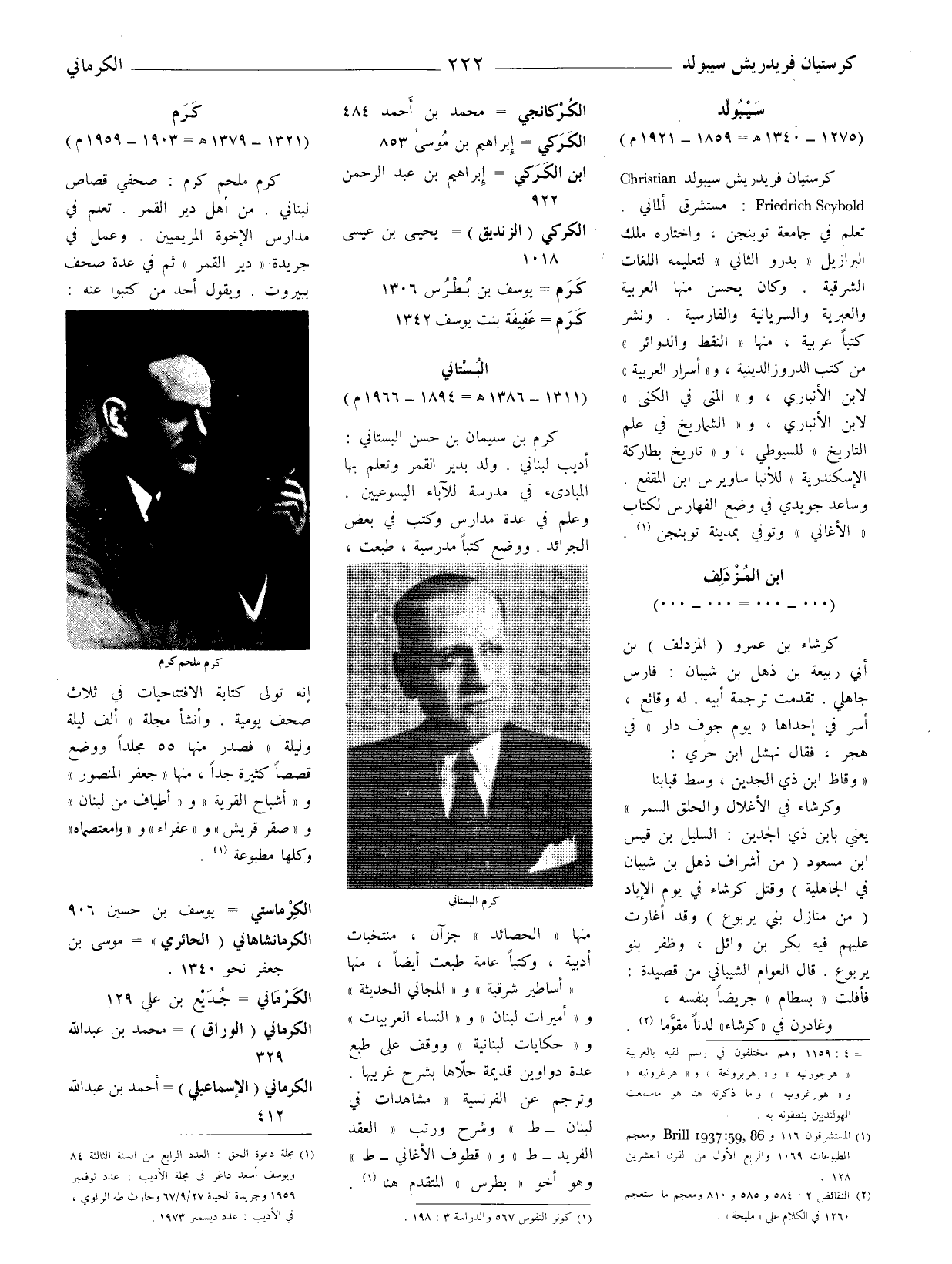 كرم بن سليمان بن حسن البستاني: أديب لبناني. ولد بدير القمر وتعلم بها المبادئ في مدرسة للآباء اليسوعيين. وعلم في عدة مدارس وكتب في بعض الجرائد. ووضع كتبا مدرسية، طبعت، [[كرم البستاني]]