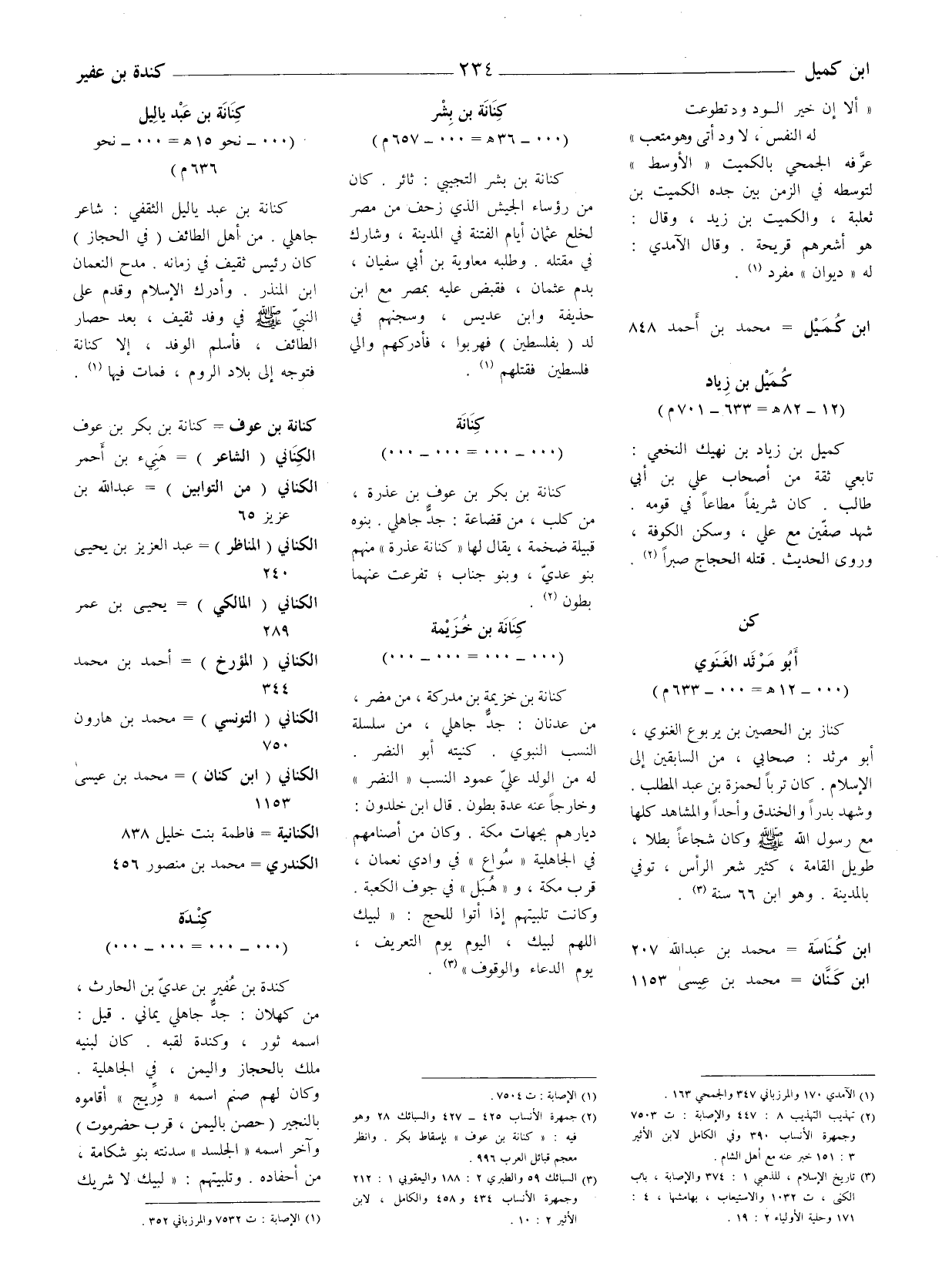 (2) جمهرة الأنساب 425 - 427 والسبائك 28 وهو فيه: " كنانة بن عوف " بإسقاط بكر.