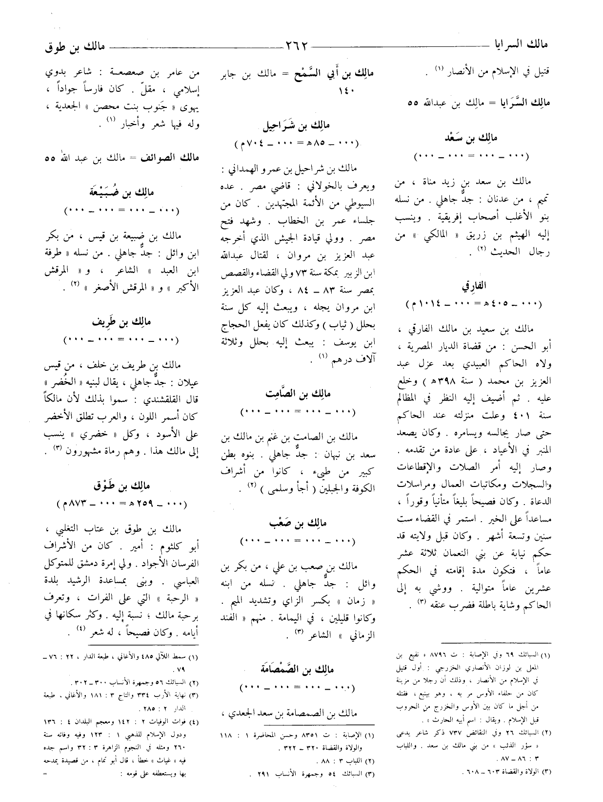 (1) الإصابة: ت 8351 وحسن المحاضرة 1: 118 والولاة والقضاة 320 - 322.