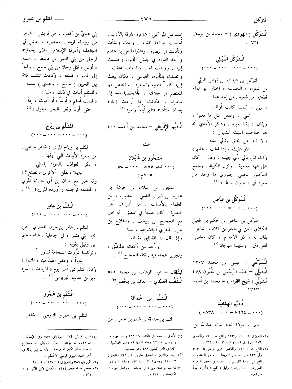 المتوكل بن عبد الله بن نهشل الليثي: من شعراء " الحماسة " اختار أبو تمام قطعتين من شعره.