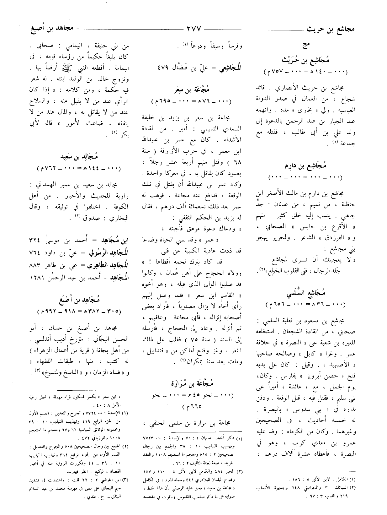 (2) المحبر 484 والكامل لابن الأثير 4: 110 و 147 وفتوح البلدان للبلاذري 441 وسماه المبرد، في الكامل " مجاعة بن سعيد " فعلق عليه المرصفي بأن هذا غلط، صوابه على ما ذكر صاحب القاموس وياقوت في مقتضيه