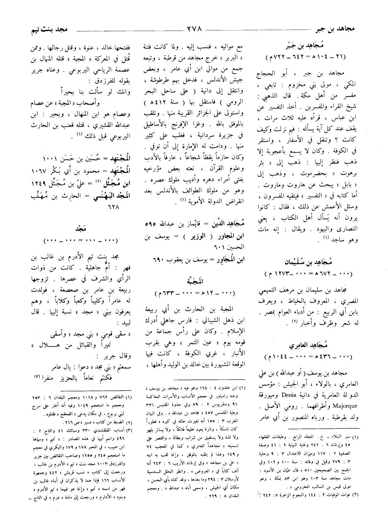 (1) ابن خلدون 4: 164 وهو فيه " مجاهد بن يوسف " وعنه زامباور في معجم الأنساب والأسرات الحاكمة 91 ومنقريوس 2: 79 وفي جذوة المقتبس 331 وبغية الملتمس 457 " مجاهد بن عبد الله " وفي البيان المغرب 3: 155 أنه تغيرت حاله في كبره " فطورا كان ناسكا، وتارة يعود خليعا فاتكا، ولا يساتر بلهو ولا لذة ولا يستفيق من شراب وبطالة " واقتصر على تسميته " مجاهدا العامري " كما في المعجب 74 و 149 وهذا لم يلقبه بالموفق، وإنما لقب به ابنه " علي بن مجاهد " وفي إرشاد الأريب 6: 243 أنه ألف كتابا في " العروض ". وانظر الحلل السندسية لأرسلان 3: 294 وما بعدها، وقد كناه ب أبي الحسن، مكان أبي الجيش، وسمى أباه " عبد الله ". ومعجم البلدان 8: 229.