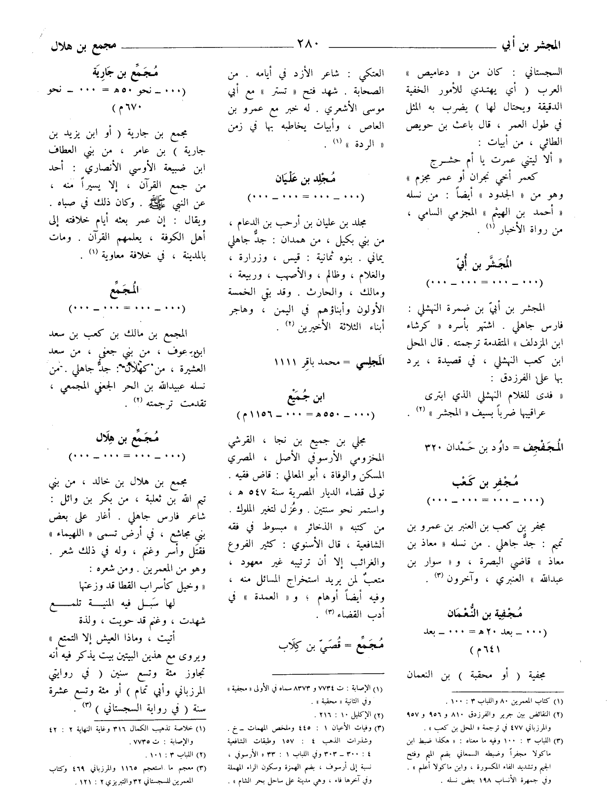 (3) معجم ما استعجم 1165 والمرزباني 469 وكتاب المعمرين للسجستاني 32 والتبريزي 2: 121.