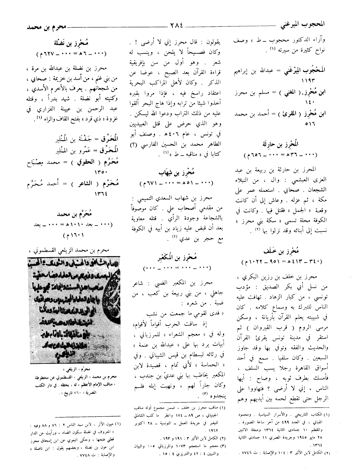 (1) مناقب محرز بن خلف، ضمن مجموع أوله مناقب الجبنياني، ص 89 - 174 وانظر ما كتب الشاذلي النيفر في جريدة العمل - التونسية - 28 اكتوبر (1962) .