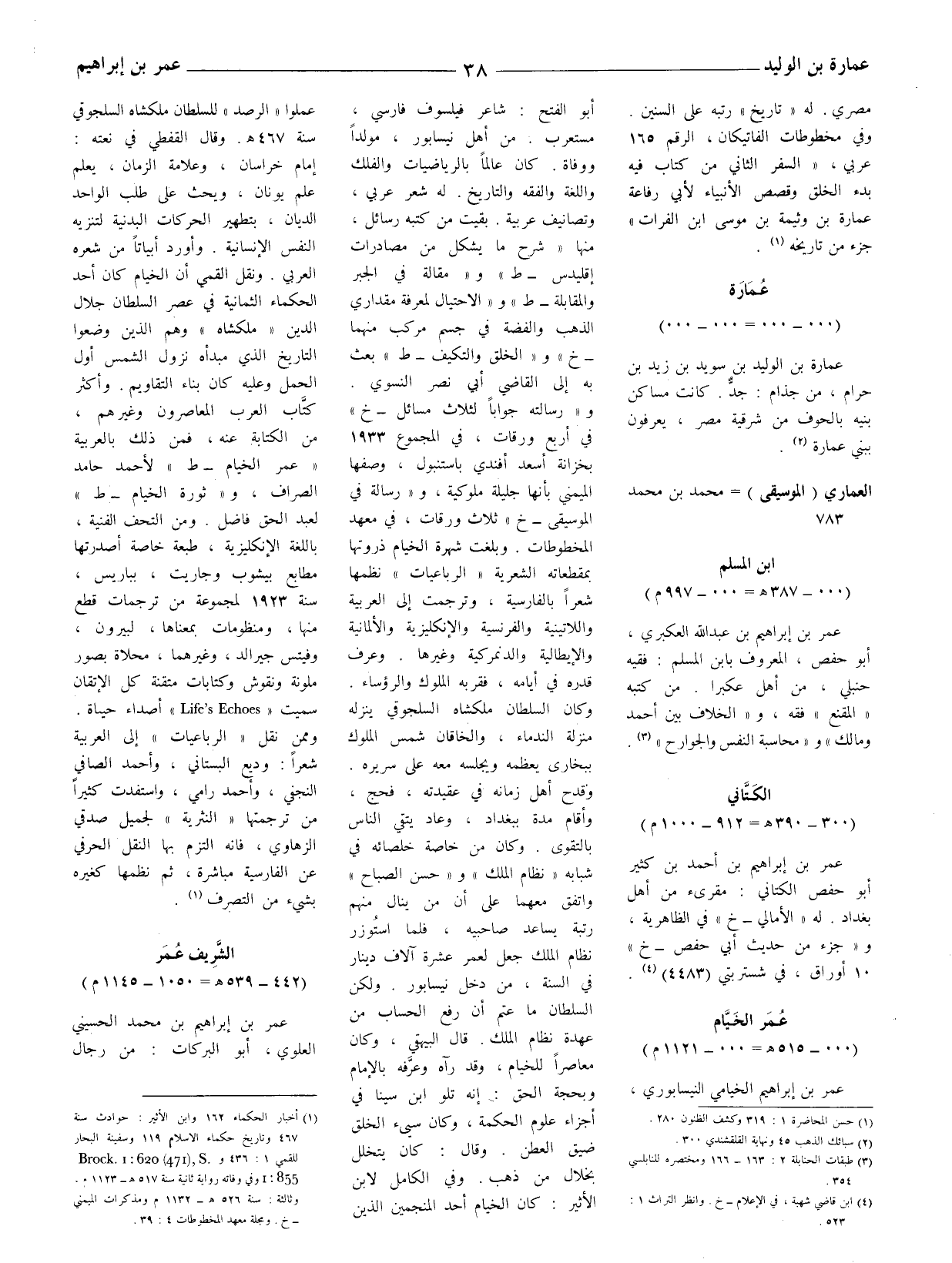 (1) أخبار الحكماء 162 وابن الأثير: حوادث سنة 467 وتاريخ الحكماء الإسلام 119 وسفينة البحار للقمي 1: 436 وbrock 1: 620 (471) S: 855. وفي وفاته رواية ثانية سنة 517 هـ - 1123 م، وثالثة: سنة 526 هـ - 1132 م ومذكرات الميمني - خ. ومجلة معهد المخطوطات 4: 39.