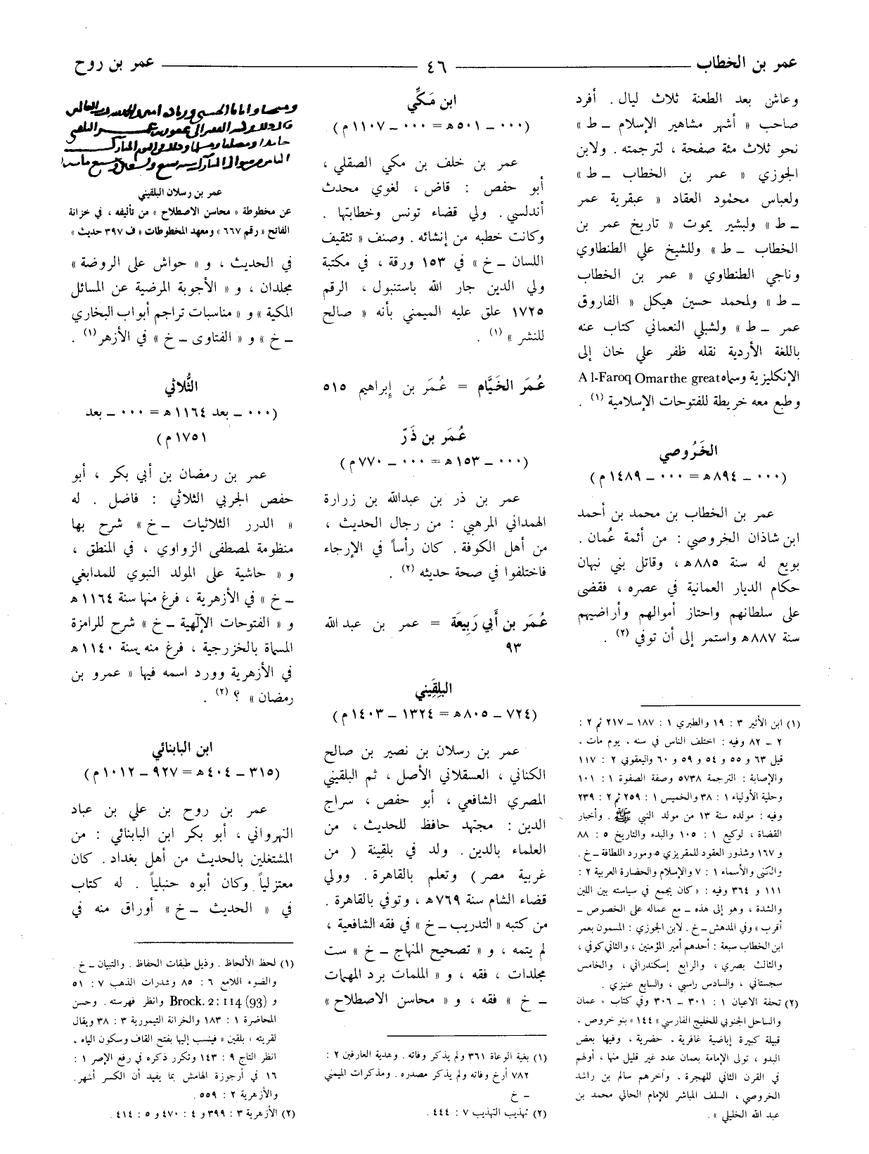 (1) لحظ الألحاظ. وذيل طبقات الحفاظ. والتبيان - خ. والضوء اللامع 6: 85 وشذرات الذهب 7: 51 وBrock 2: 114 (93) وانظر فهرسته. وحسن المحاضرة 1: 183 والخزانة التيمورية 3: 38 ويقال لقريته " بلقين " فينسب إليها بفتح القاف وسكون الياء. انظر التاج 9: 143 وتكرر ذكره في رفع الإصر 1: 16 في أرجوزة الهامش بما يفيد أن الكسر أشهر. والأزهرية 2: 559.