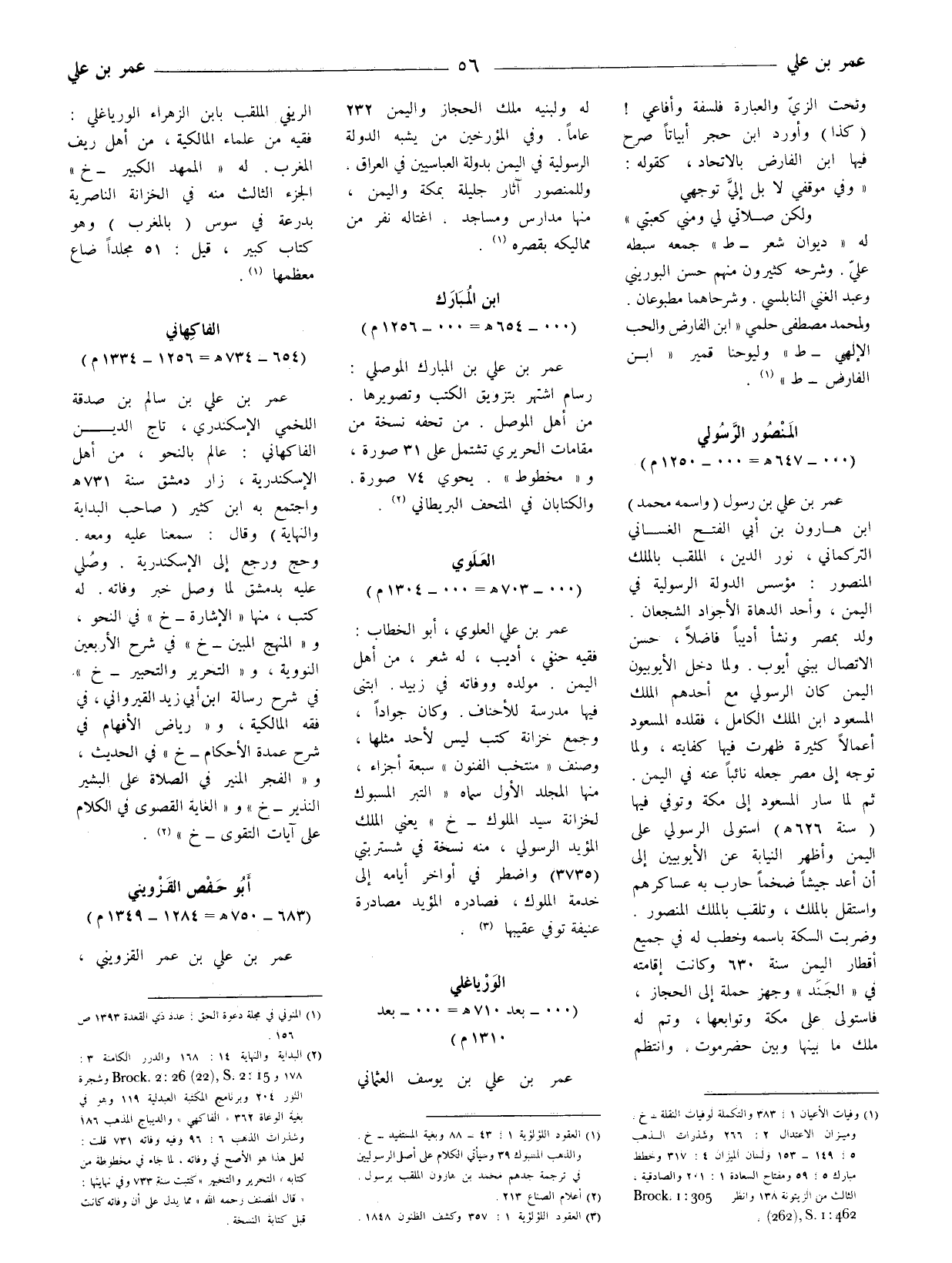 عمر بن علي العلويّ، أبو الخطاب: فقيه حنفي، أديب، له شعر، من أهل اليمن. مولده ووفاته في زبيد. ابتنى فيها مدرسة للأحناف. وكان جوادا، وجمع خزانة كتب ليس لأحد مثلها، وصنف " منتخب الفنون " سبعة أجزاء. منها المجلد الأول سماه " التبر المسبوك لخزانة سيد الملوك - خ " يعني الملك المؤيد الرسولي، منه نسخة في شستربتي (3735) واضطر في أواخر أيامه إلى خدمة الملوك، فصادره المؤيد مصادرة عنيفة توفي عقيبها (3) .