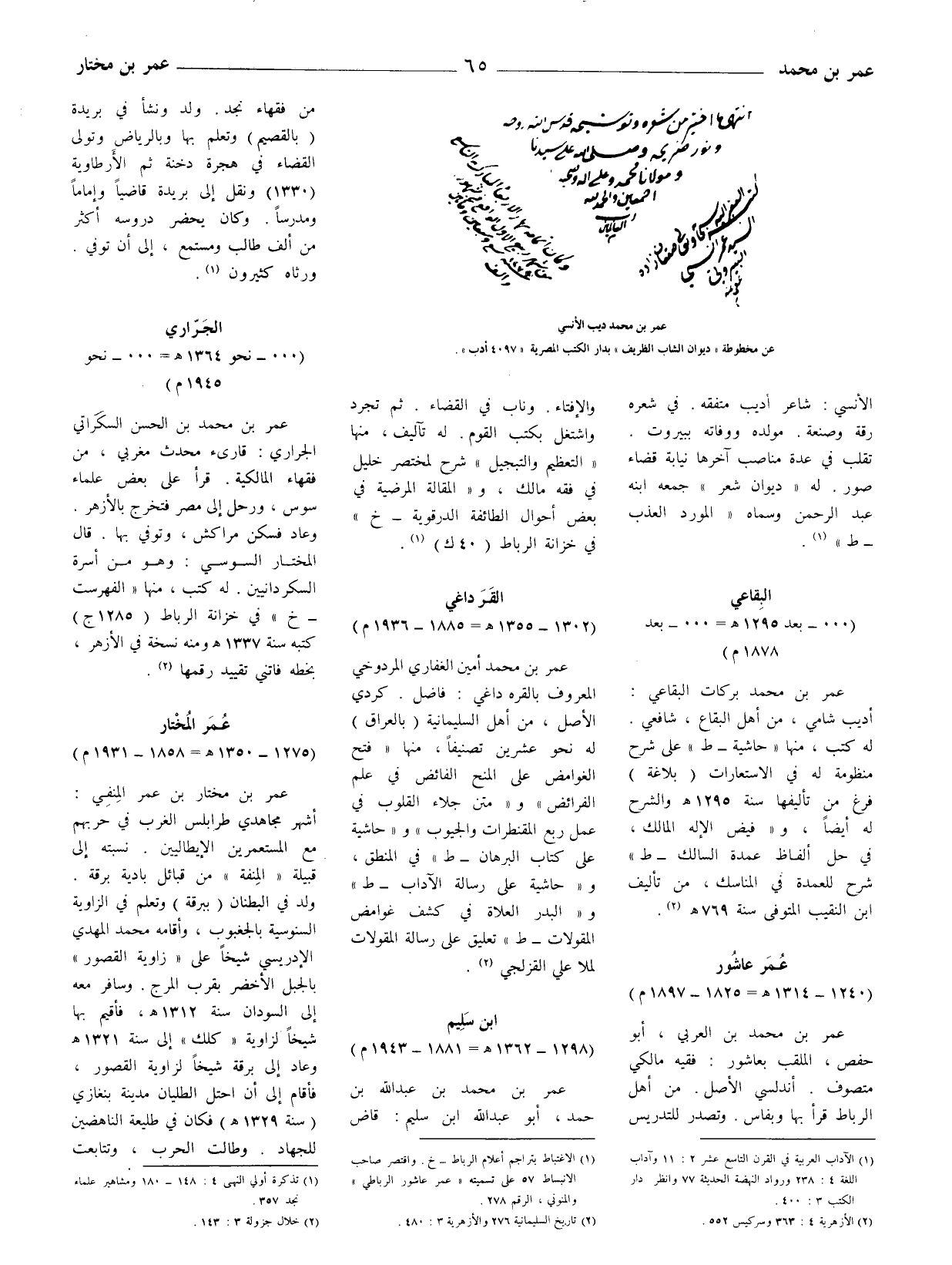 (1) الاغتباط بتراجم أعلام الرباط - خ. واقتصر صاحب الانبساط 57 على تسميته " عمر عاشور الرباطي " والمنوني، الرقم 278.