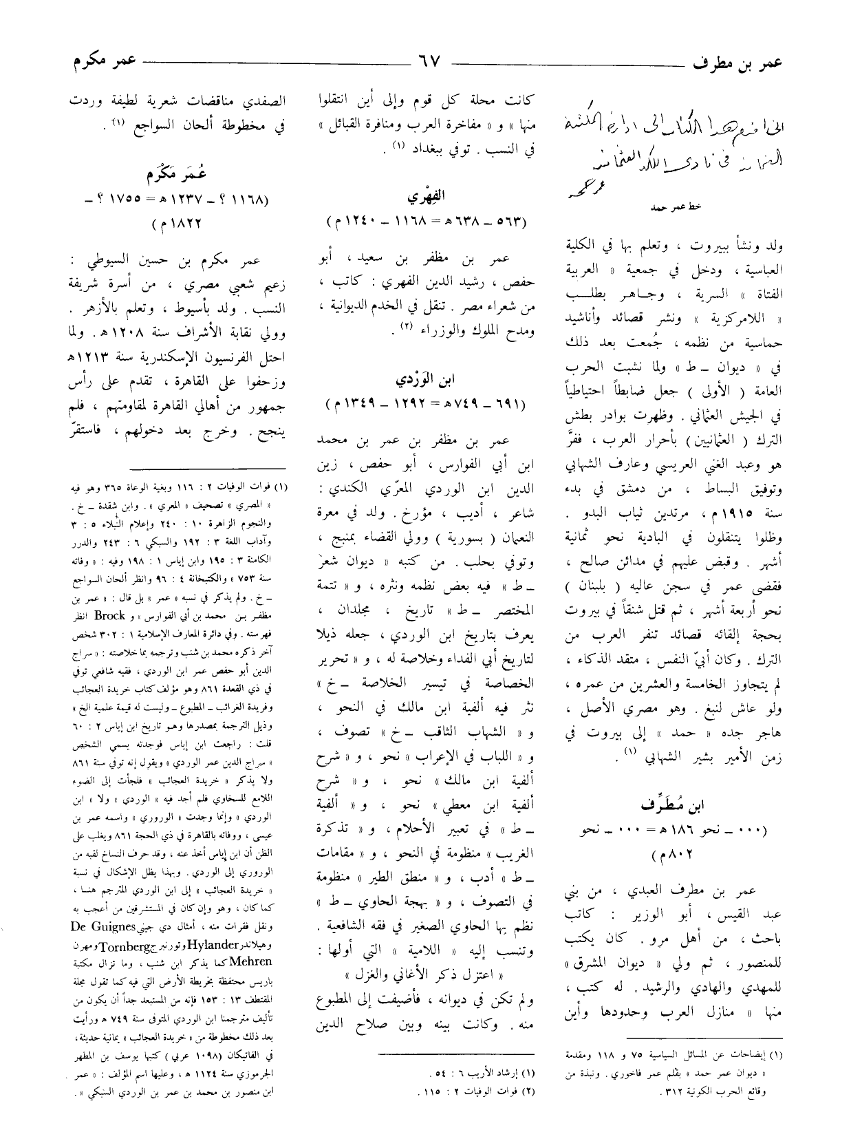 (1) إيضاحات عن المسائل السياسية 75 و 118 ومقدمة " ديوان عمر حمد " بقلم عمر فاخوري.