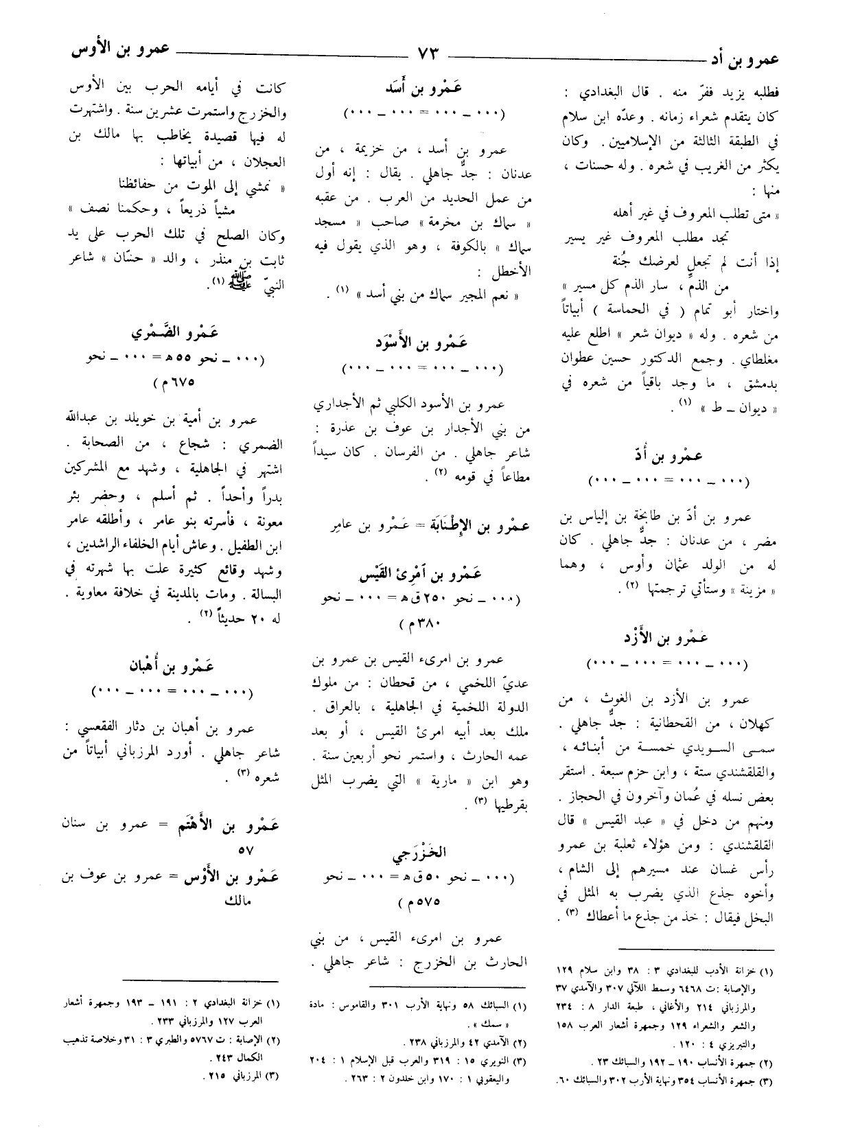 (1) خزانة البغدادي 2، 191 - 193 وجمهرة أشعار العرب 127 والمرزباني 233.