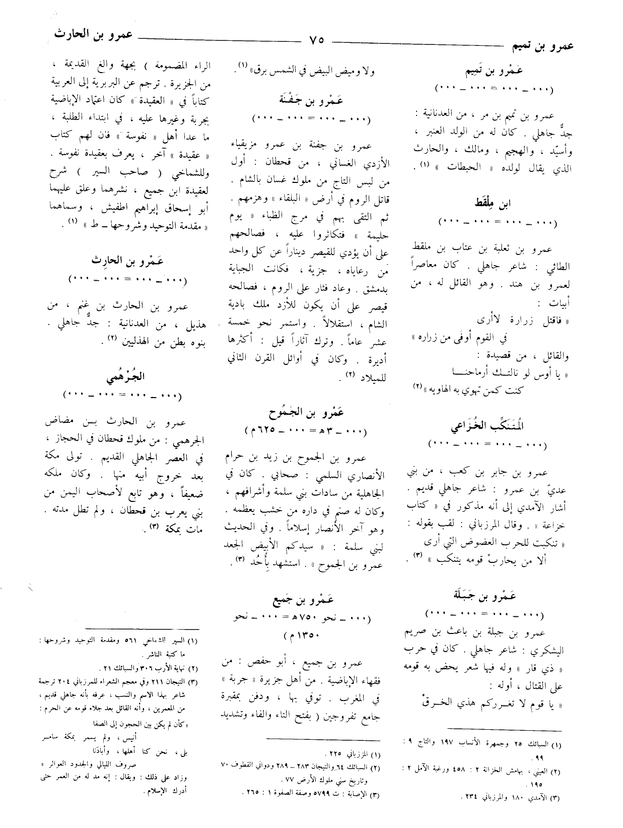 (3) التيجان 211 وفي معجم الشعراء للمرزباني 204 ترجمة شاعر بهذا الاسم والنسب، عرفه بأنه جاهلي قديم، من المعمرين، وأنه القائل بعد جلاء قومه عن الحرم: