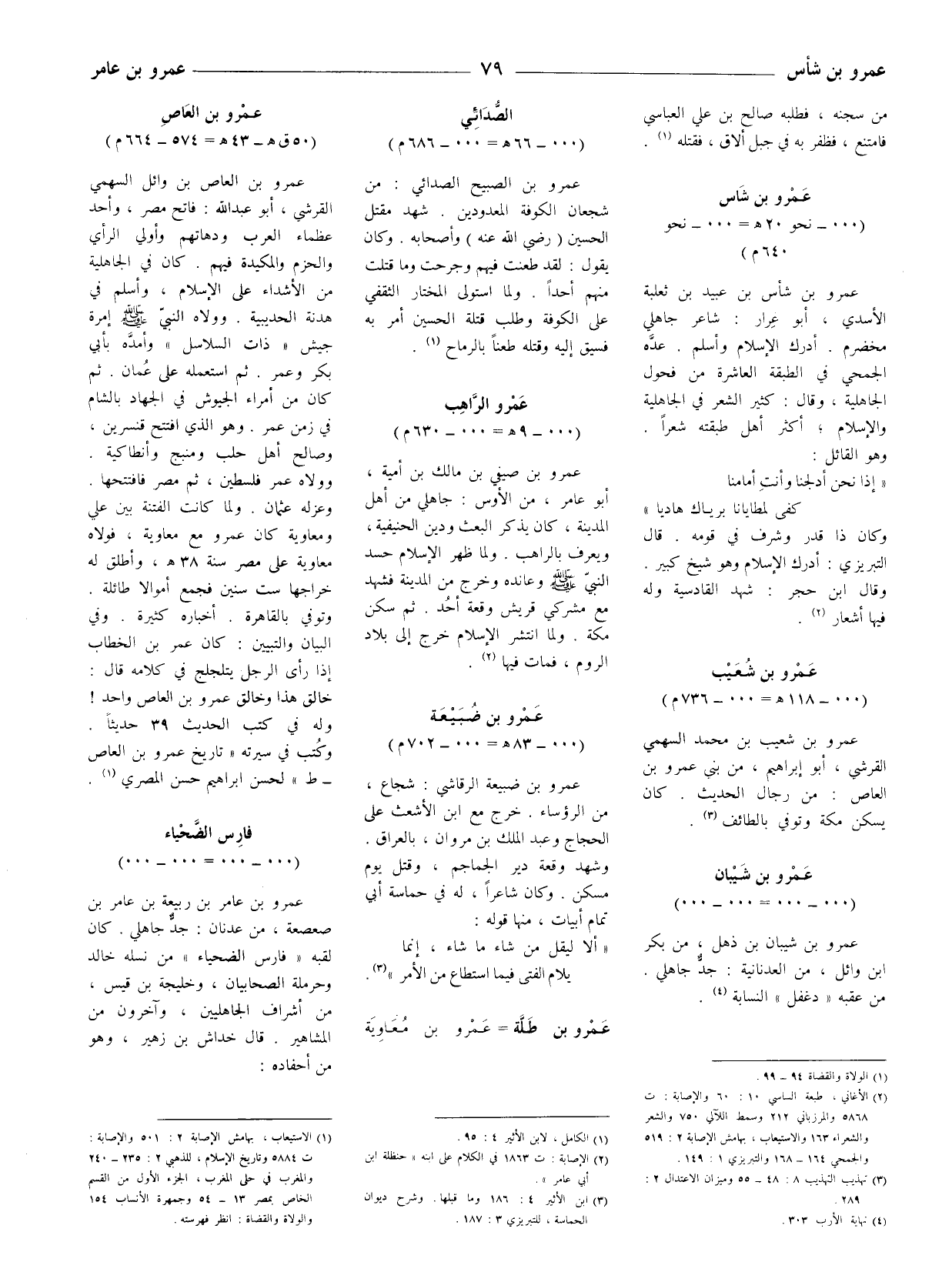 عمرو بن العاص بن وائل السهمي القرشي، أبو عبد الله: فاتح مصر، وأحد عظماء العرب ودهاتهم وأولي الرأي والحزم والمكيدة فيهم. كان في الجاهلية من الأشداء على الإسلام، وأسلم في هدنة الحديبيّة. وولاه النبي صلى الله عليه وسلم إمرة جيش " ذات السلاسل " وأمده ب أبي بكر وعمر. ثم استعمله على عُمان. ثم كان من أمراء الجيوش في الجهاد بالشام في زمن عمر.