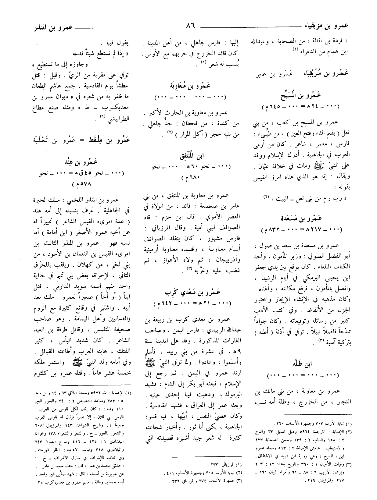 (2) الإصابة: الترجمة 5964 وذيل المذيل 33 والتاج 2: 158 واللباب 2: 139 وحسن الصحابة 123 والاستيعاب، هامش الإصابة 2: 513 وسماه عمرو ابن " المسيح " وهي رواية ابن دريد في الاشتقاق.