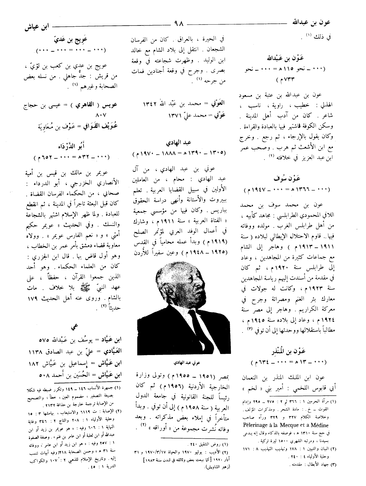 عوني بن عبد الهادي، من آل عبد الهادي: محام، من العاملين الأولين في سبيل القضايا العربية.