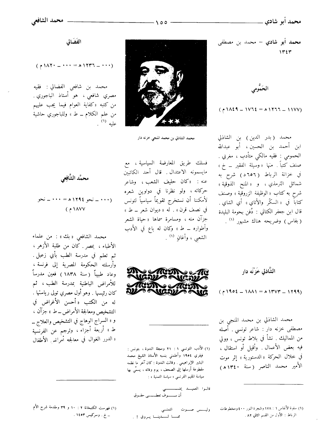 محمد الشاذلي بن محمد المنجي بن مصطفى خزنه دار: شاعر تونسي. أصله من المماليك.
